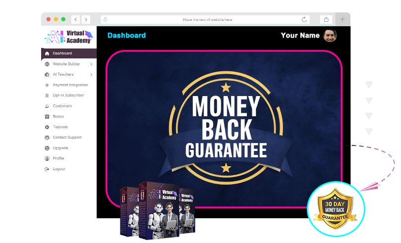 While that is unlikely, we removed all the risk for you. If you tried AI Virtual Academy and failed, we will refund you every cent you paid